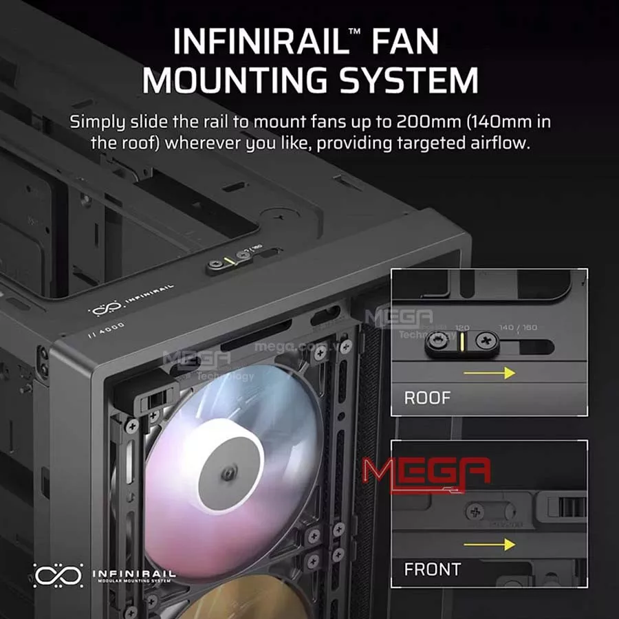 | Giá đỡ quạt | Phía dưới: 2x 120mm Phía sau: 1x 120mm, 1x 140mm |