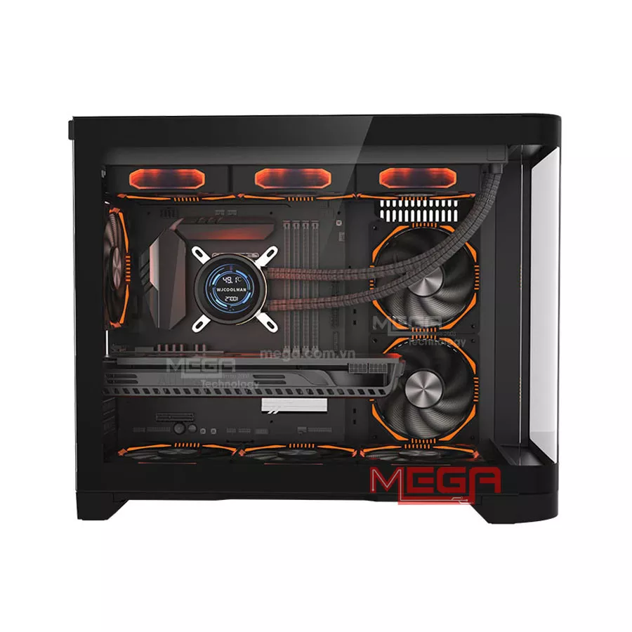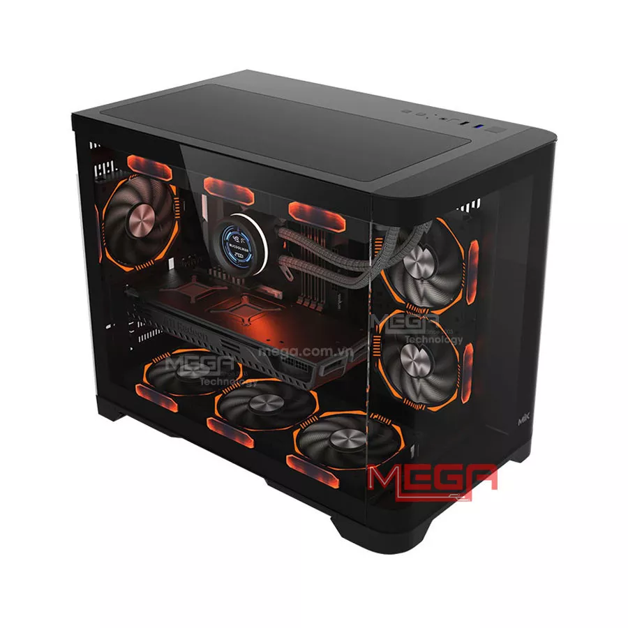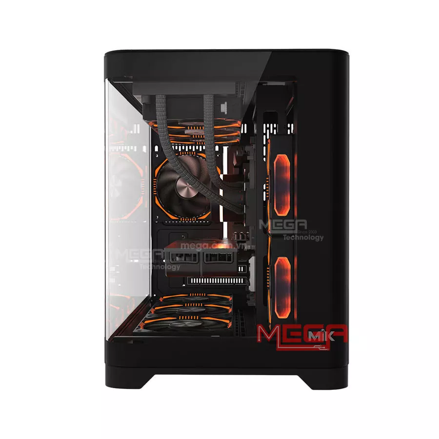 | Giá đỡ quạt | Hỗ trợ tối đa 9 quạt 120mm: Mặt trên: 3 x 120mm (Tùy chọn) Mặt hông (MB Panel): 2 x 120mm (Tùy chọn) Mặt đáy: 3 x 120mm (Tùy chọn) Mặt sau: 1 x 120mm (Tùy chọn) |