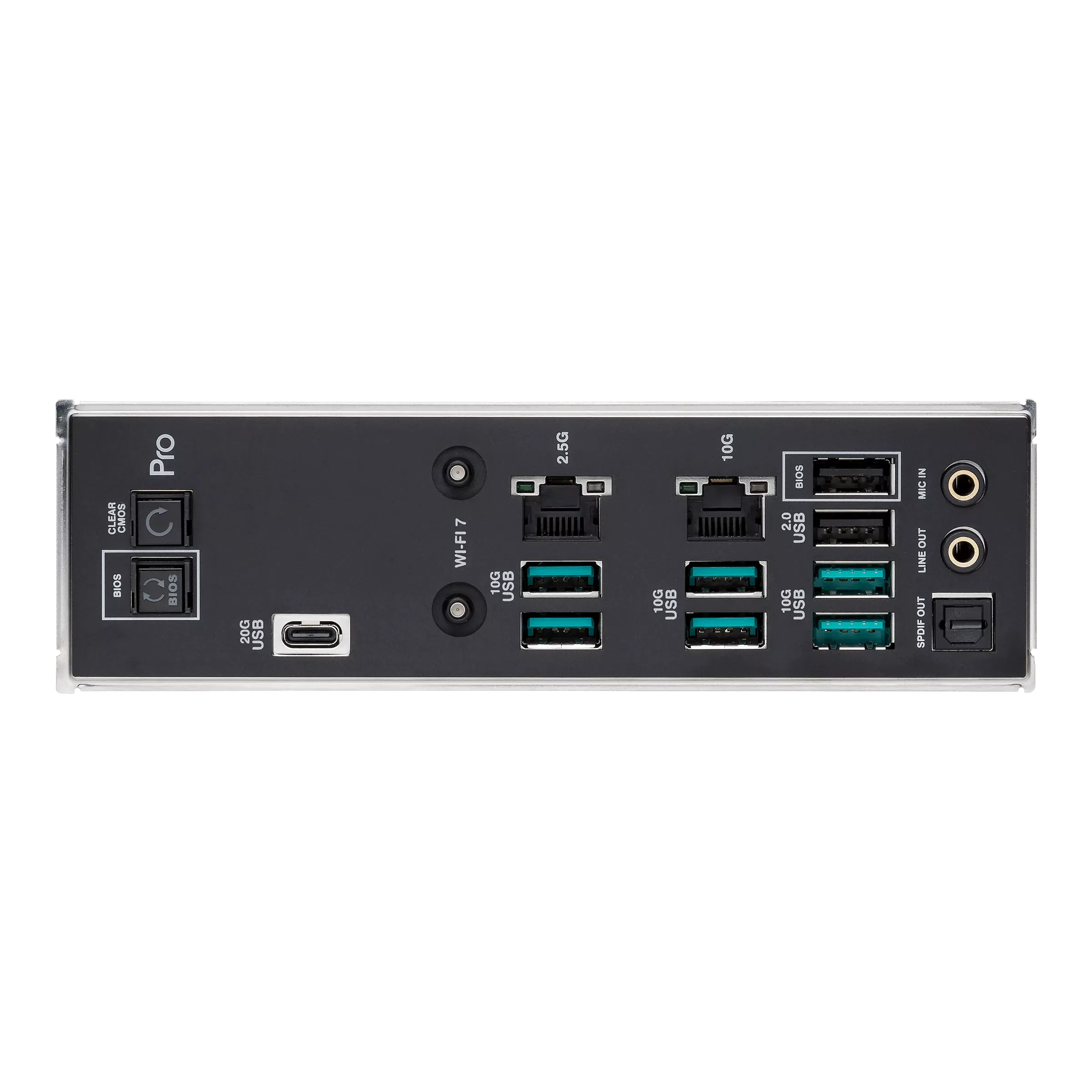 | Cổng I/O phía sau | 1 x USB 20Gbps (Type-C) 6 x USB 10Gbps (Type-A) 2 x USB 2.0 (Type-A) 1 x Module Wi-Fi 7 + Bluetooth 5.4 2 x Cổng mạng LAN (10G & 2.5G) Jack âm thanh, nút BIOS FlashBack™, nút Clear CMOS |