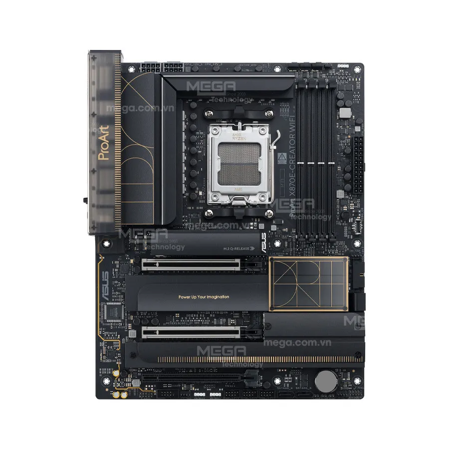 | Khe cắm | 2 x PCIe 5.0 x16 (hỗ trợ chế độ x16 đơn hoặc chia đôi x8/x8), 1 x PCIe 4.0 x16 (chạy tối đa ở chế độ x4) |