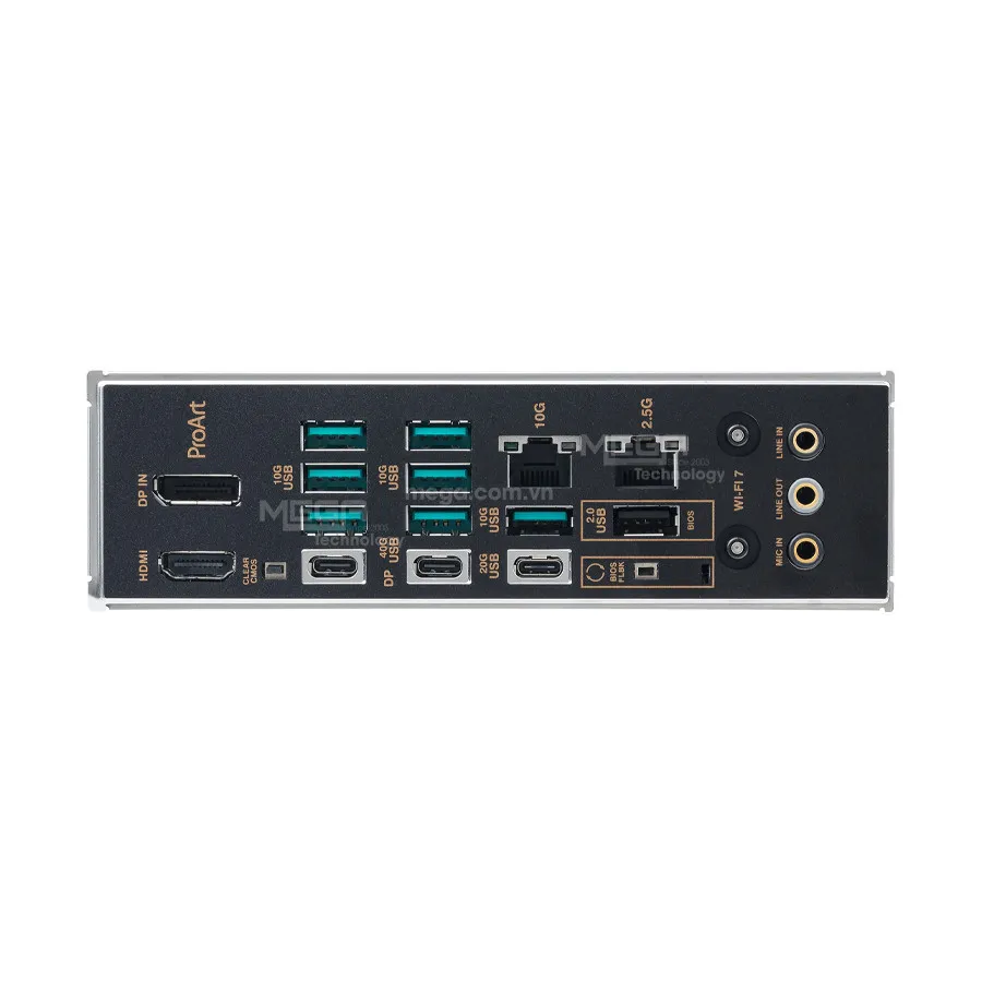 | Cổng I/O phía sau | 2 x USB4® (40Gbps, Type-C) 1 x USB 20Gbps (Type-C) 7 x USB 10Gbps (Type-A) 1 x USB 2.0 (Type-A) 1 x Module Wi-Fi 7 + Bluetooth 5.4 2 x Cổng mạng LAN (10Gb & 2.5Gb) Jack âm thanh, nút BIOS FlashBack™ |