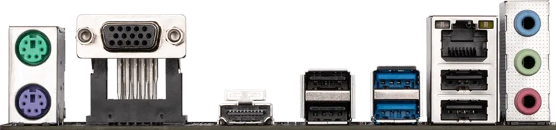 | Cổng I/O phía sau | 2 x USB 3.2 Gen 1 (Type-A, màu xanh) 4 x USB 2.0 (Type-A, màu đen) 1 x HDMI, 1 x D-Sub (VGA) 1 x Cổng mạng LAN RJ45 3 x Jack âm thanh |