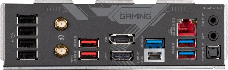 | Cổng I/O phía sau | 1 x USB 3.2 Gen 2x2 (Type-C, 20Gbps) 2 x USB 3.2 Gen 2 (Type-A, màu đỏ) 3 x USB 3.2 Gen 1 (Type-A, màu xanh) 4 x USB 2.0 (Type-A, màu đen) 1 x Module Wi-Fi 6E + Bluetooth 5.3 1 x Cổng mạng LAN 2.5Gb 3 x Jack âm thanh (Mic in / Line out / Mic out) |