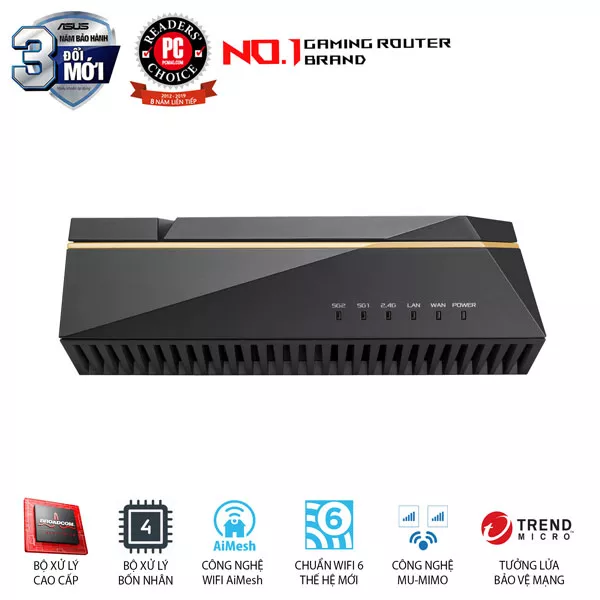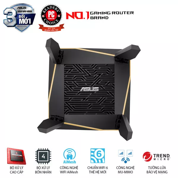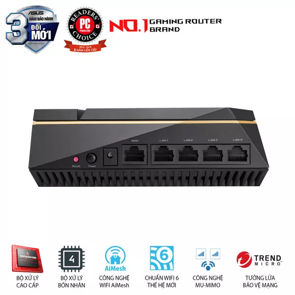 | Mạng khách | "Guest Network cung cấp kết nối Internet cho khách nhưng hạn chế quyền truy cập vào mạng cục bộ của bạn." • Tối ưu Quy tắc mạng Guest :2.4GHz x2, 5GHz-1 x2,5GHz-2 x4 Giới hạn thời gian kết nối mạng Khách Mã hóa mạng Guest :Hệ thống mở, WPA/WPA2-Personal |