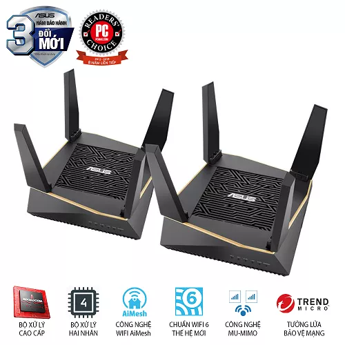 | Mạng khách | "Guest Network cung cấp kết nối Internet cho khách nhưng hạn chế quyền truy cập vào mạng cục bộ của bạn." • Tối ưu Quy tắc mạng Guest :2.4GHz x2, 5GHz-1 x2,5GHz-2 x4 Giới hạn thời gian kết nối mạng Khách Mã hóa mạng Guest :Hệ thống mở, WPA/WPA2-Personal |