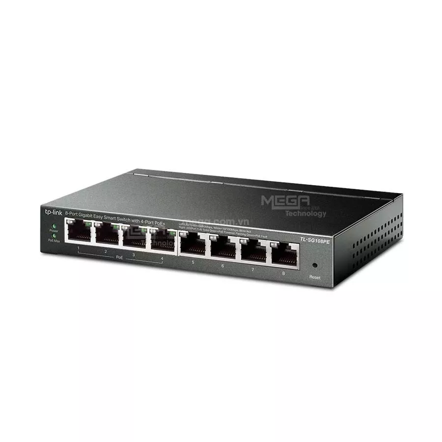 | Ports | 8 × RJ45 Gigabit (4 cổng hỗ trợ PoE) |