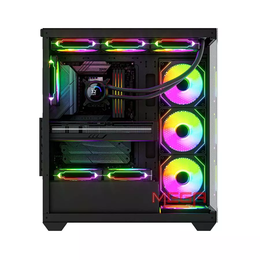 | Giá đỡ quạt | Mặt trên: 3 x 120mm hoặc 2 x 140mm Mặt hông: 3 x 120mm hoặc 2 x 140mm Mặt dưới (đáy): 3 x 120mm Mặt sau: 1 x 120mm |